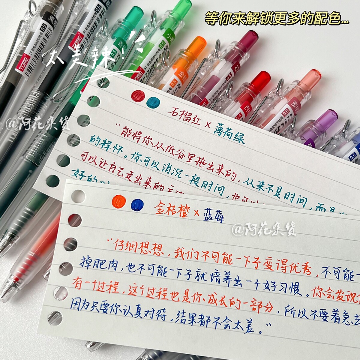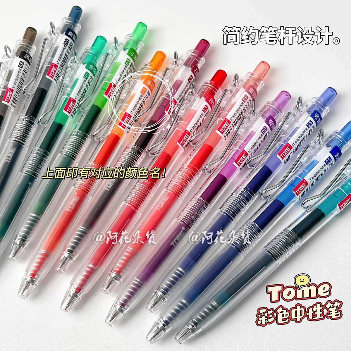 📚 12色彩色中性笔做笔记专用学生标注重点手账笔ST按动式顺滑签字笔