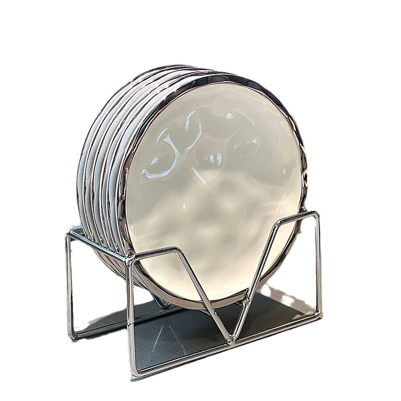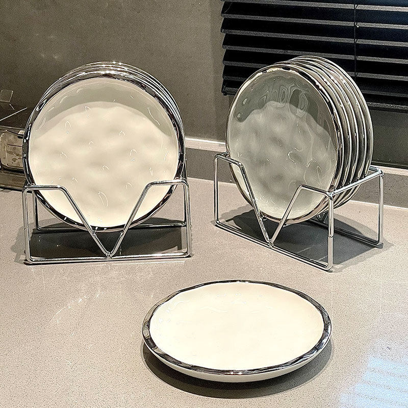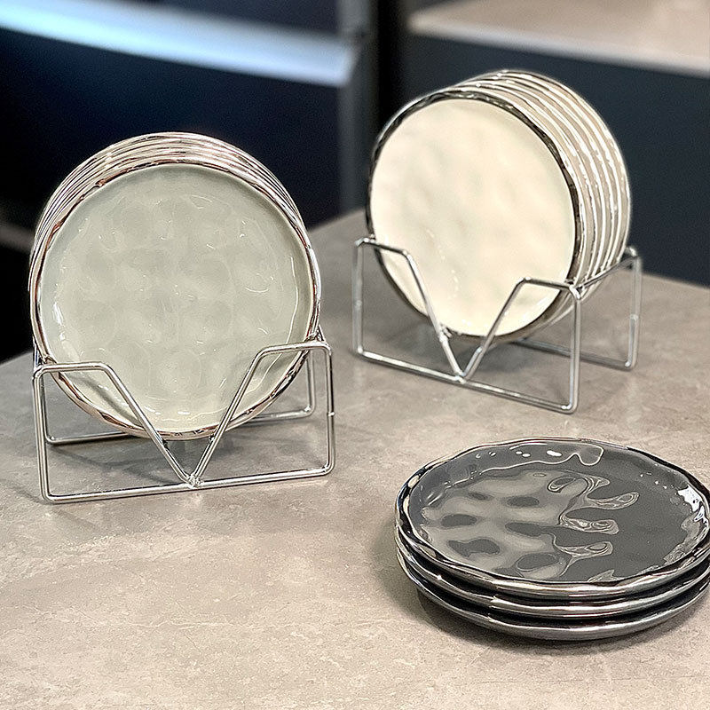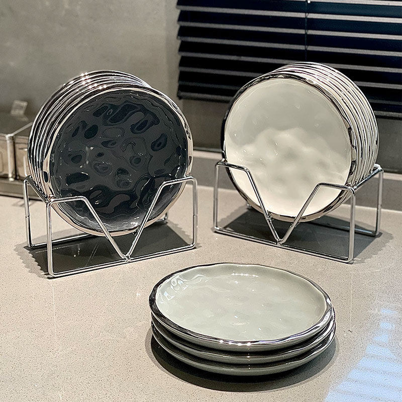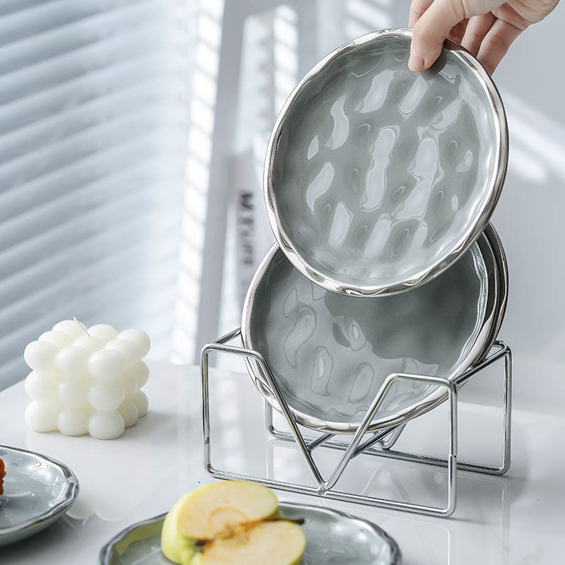 📚 北欧风银边吐骨碟轻奢陶瓷骨碟家用手捏纹创意多用途小碟子吐骨盘