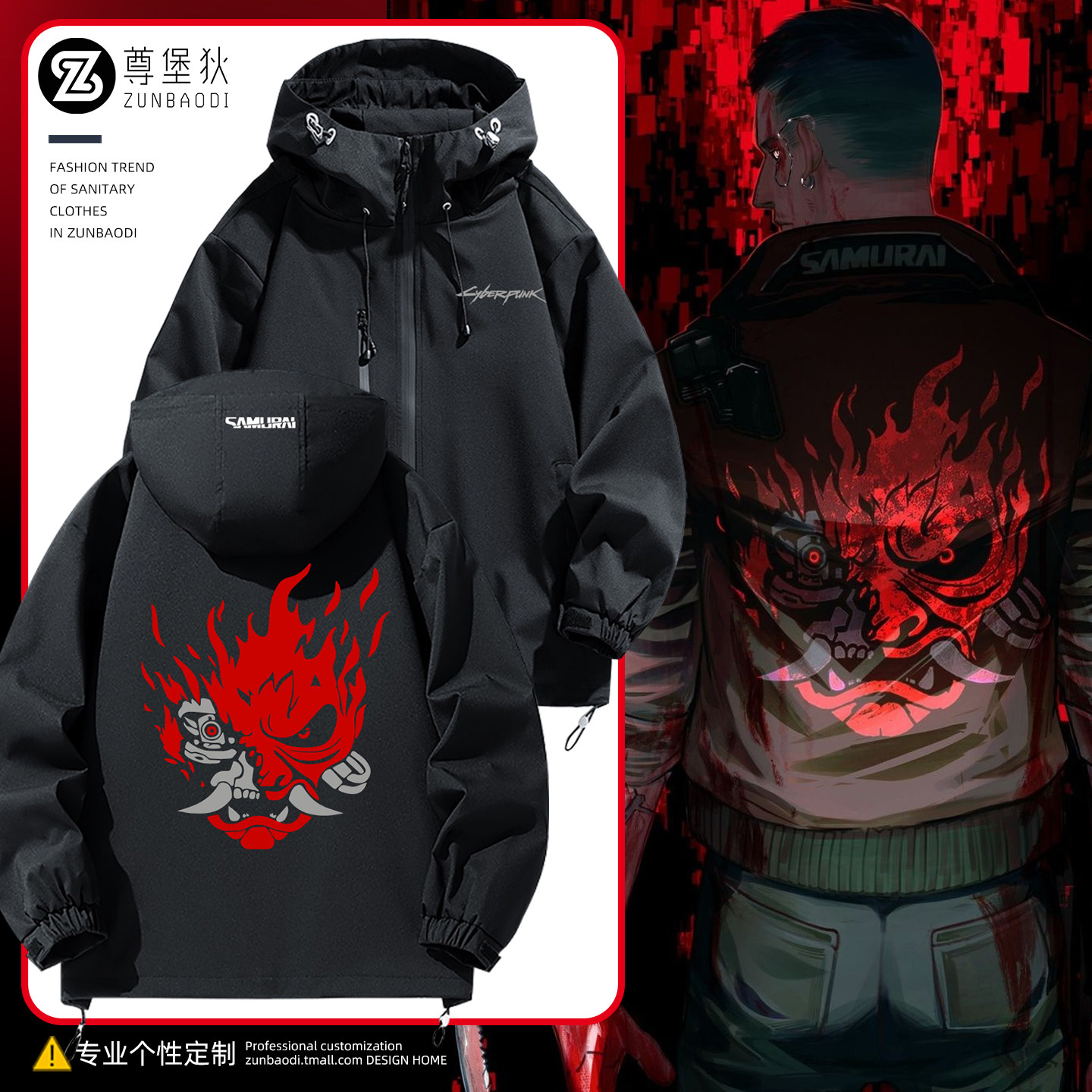 📚 赛博朋克2077游戏周边黑色外套男款强尼银手武侍乐队连帽夹克衣服