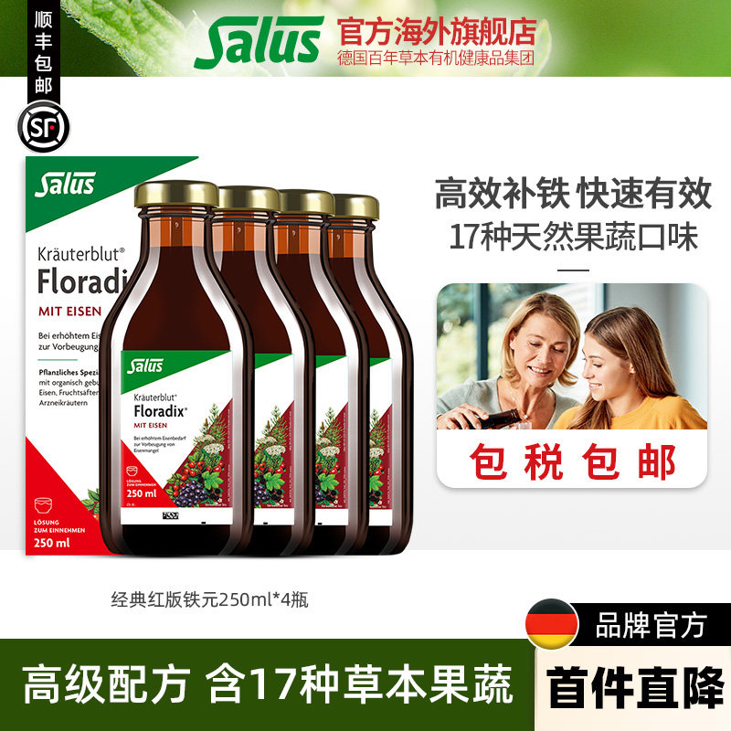 📚 Salus莎露斯红版德国铁元孕期女性补铁血补铁eisen铁元素250ml*4