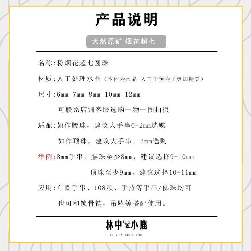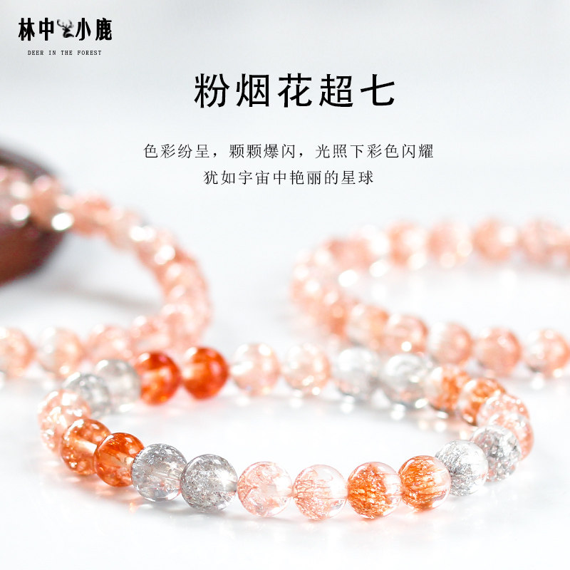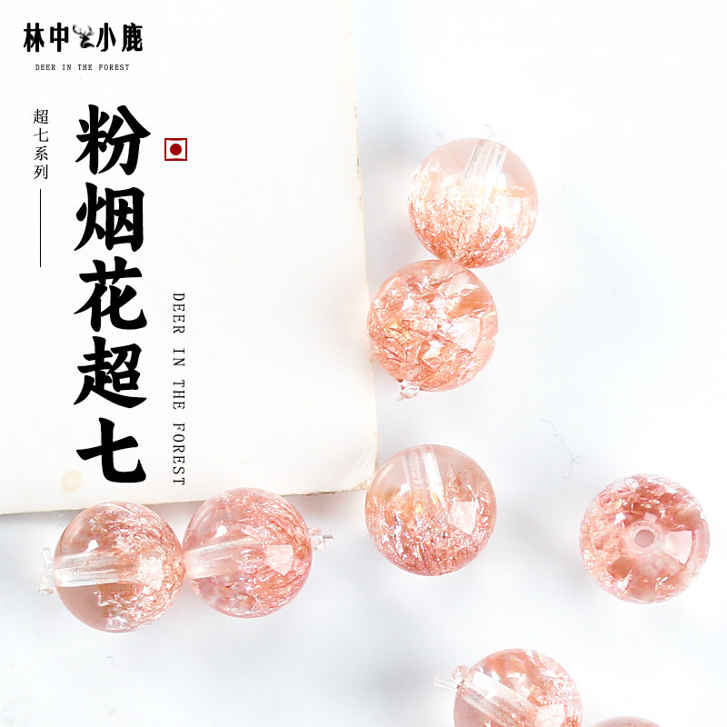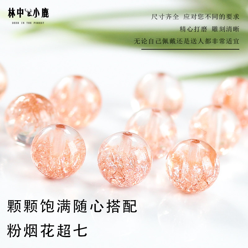📚 超七水晶散珠骨干粉色烟花圆珠手串处理水晶多宝单颗聚宝盆di配饰