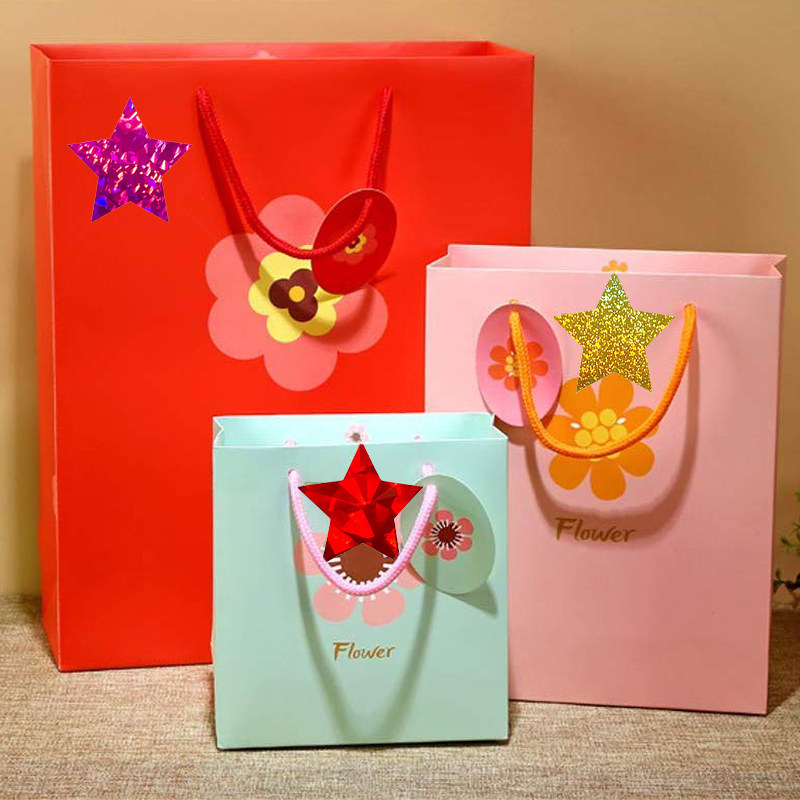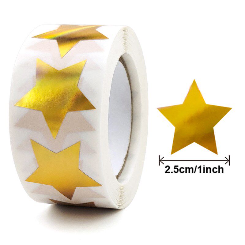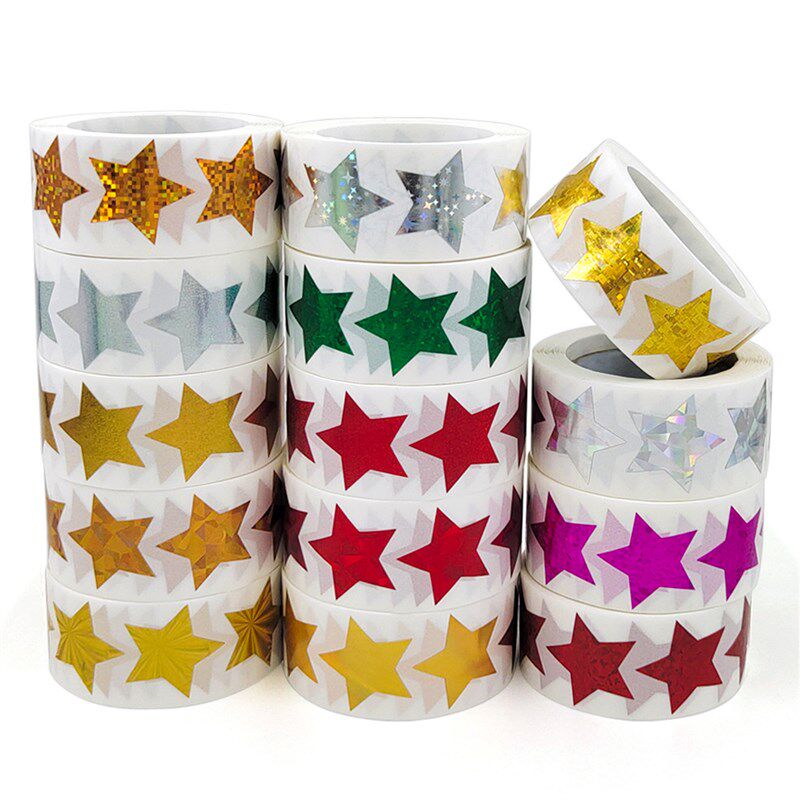 📚 500张/卷闪光镭射五角星贴纸彩色星星奖励贴画礼物包装封口贴装饰