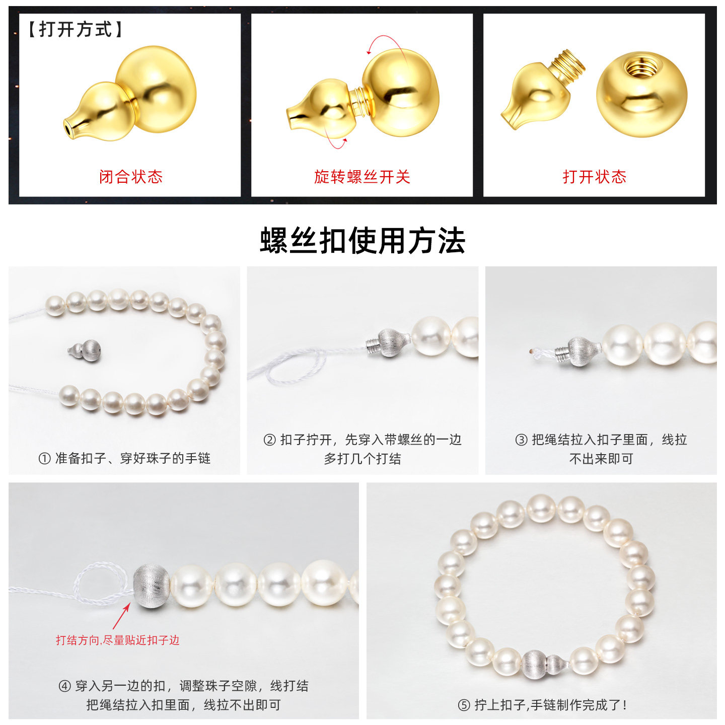 📚 s925纯银项链扣珍珠diy配件闪沙拉丝葫芦串珠收尾扣螺丝连接扣子