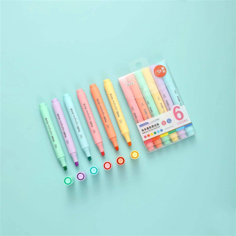 📚 6Pcs/set Pastel Color Macaron Highlighter Pen Marker Pens Fl