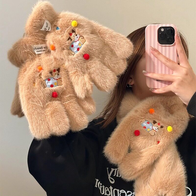 📚 韩系可爱毛绒围巾女冬季2025新款加绒加厚保暖学生护颈交叉小围脖