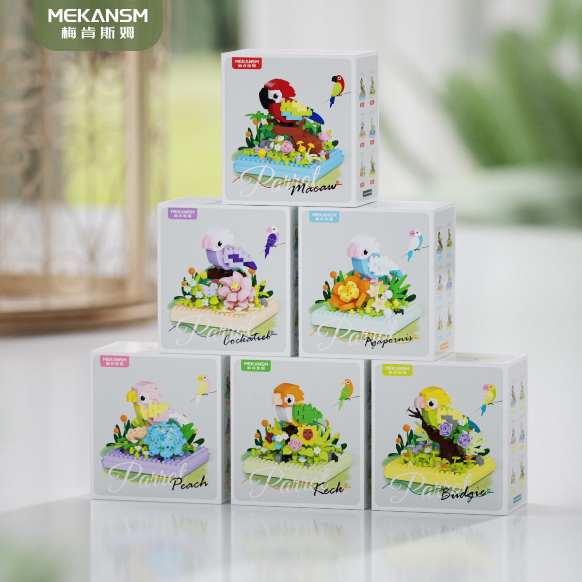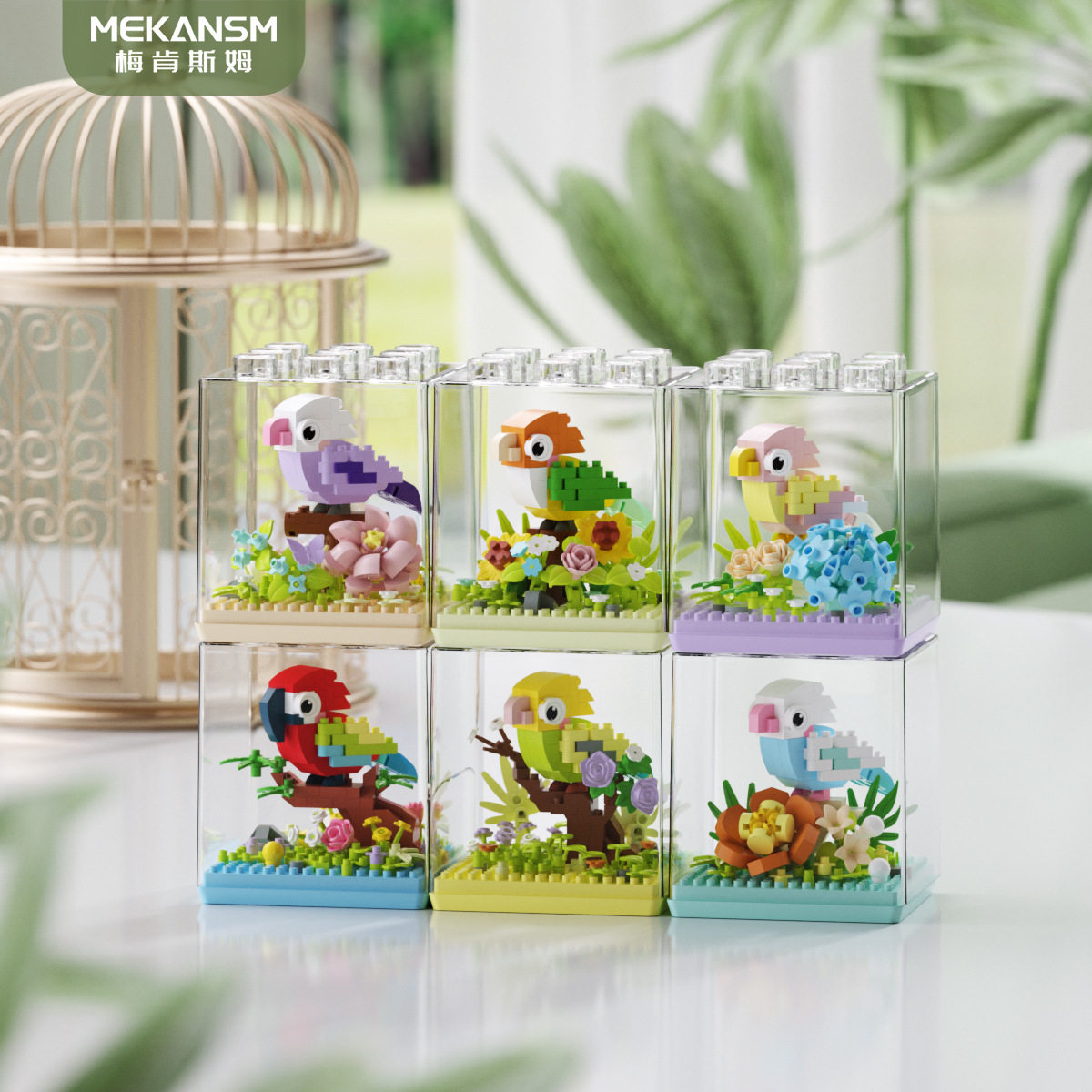📚 鹦鹉金刚小鸟积木花动物摆件手工儿童玩具六一儿童节礼物