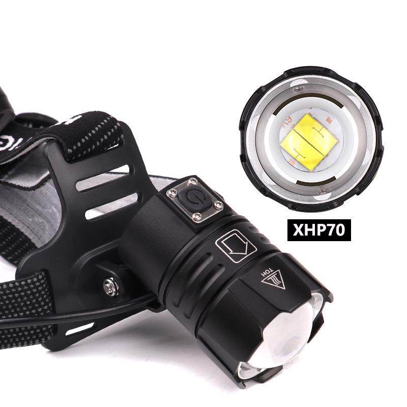 📚 跨境新款XHP70伸缩变焦头灯 USB充电电量显示大透镜XHP70强光头灯