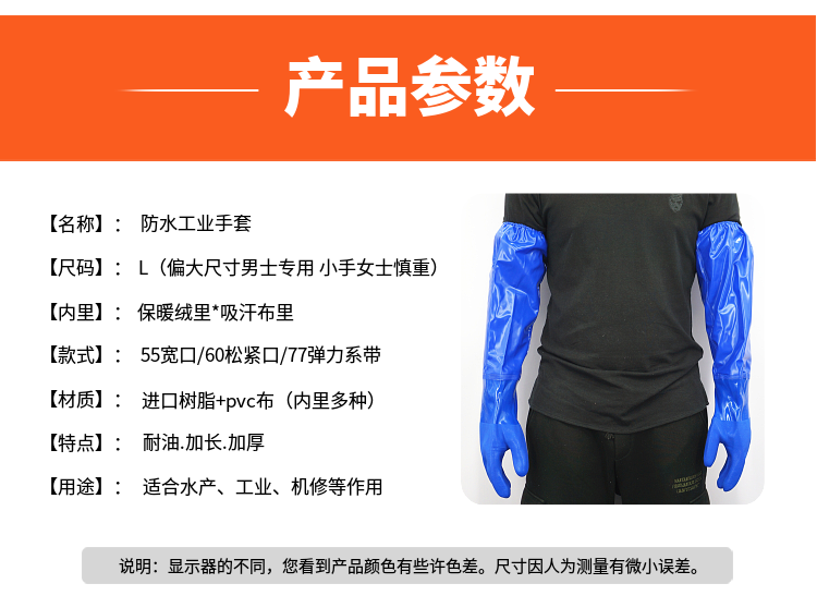 📚 加厚加长款耐用耐酸碱清洁工业浸塑手套渔业橡胶防护长袖清洁胶皮