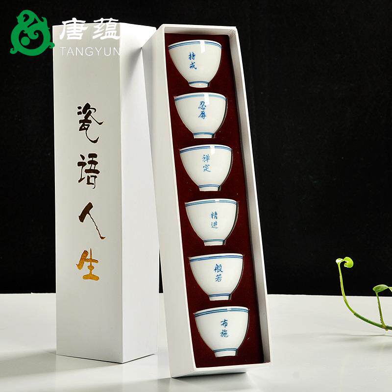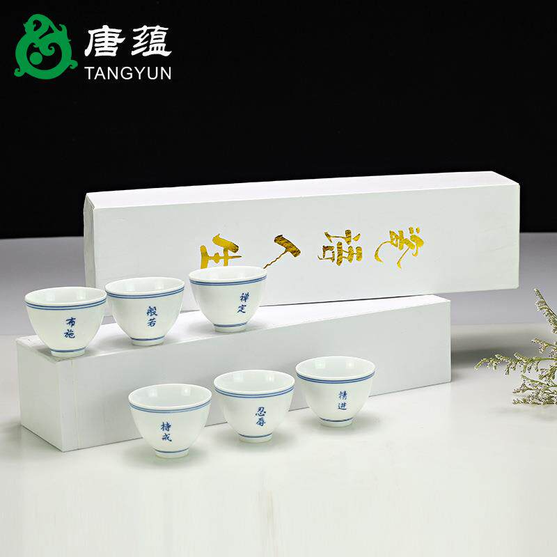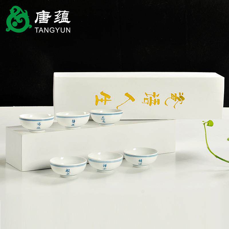 📚 爆款六度描金脂白定窑品茗杯陶瓷功夫茶具茶杯个人杯子茶盏碗礼品