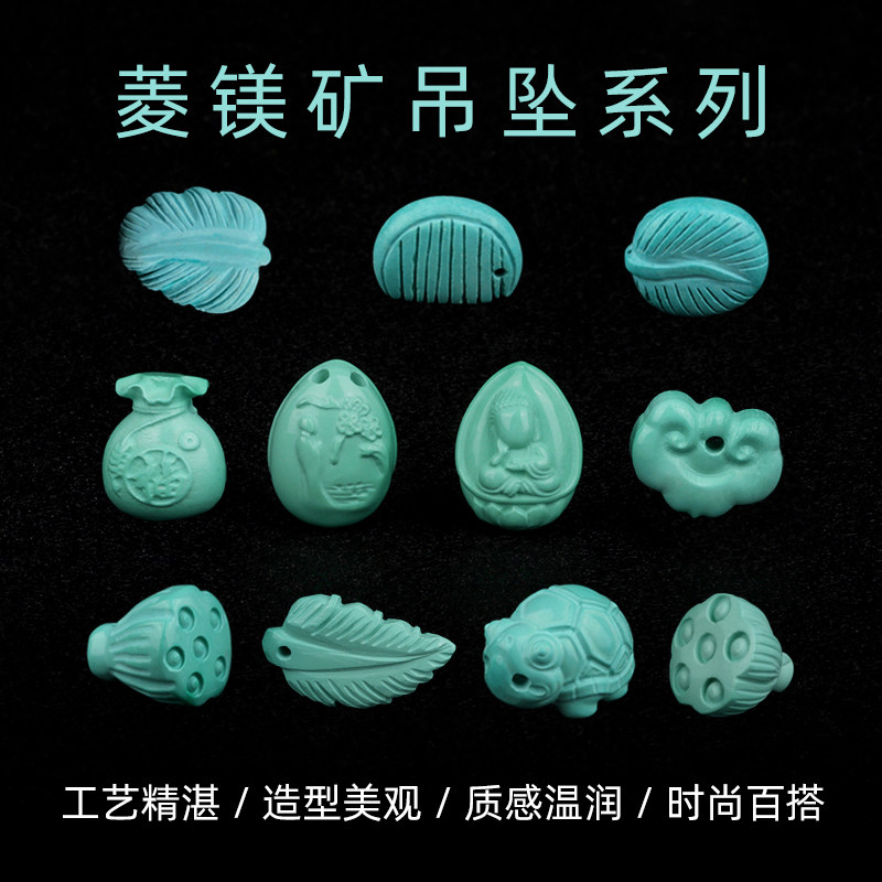 📚 菱镁矿绿松石吊坠无相佛莲蓬福袋如意锁乌龟羽毛梳子手链项链挂件