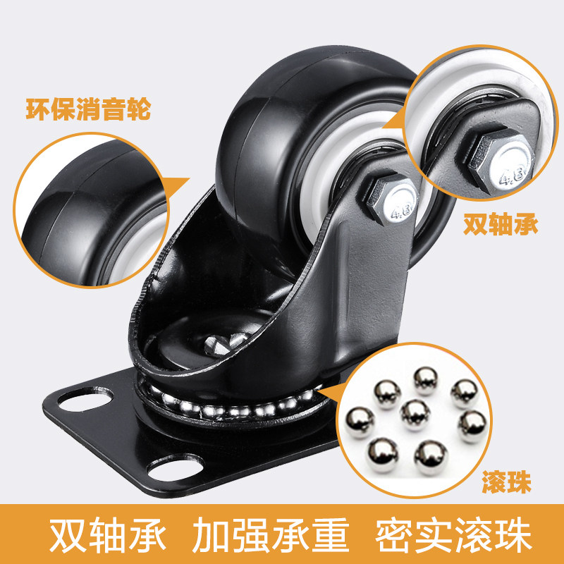 📚 万向脚轮婴儿床行李箱1.5寸23带刹车轱辘耐磨静音转定手推车底座
