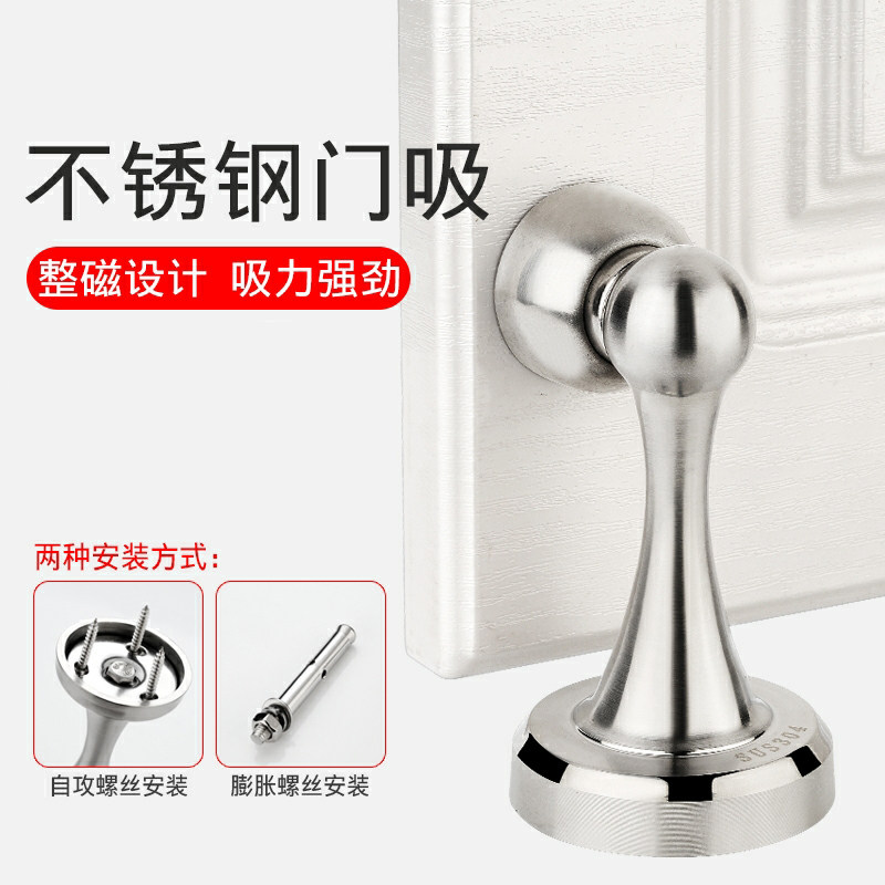📚 门吸打孔304不锈钢加厚强磁吸门器卫生间防撞门碰加长门挡器地吸