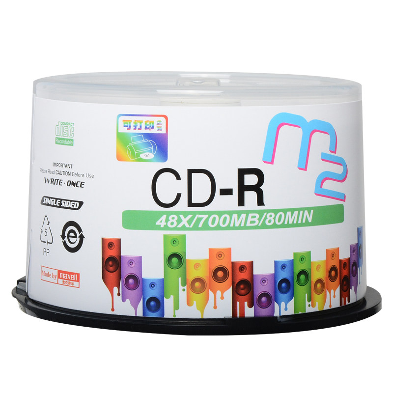 📚 麦克赛尔/万胜 M2系列可打印CD-R 48速700M 50片桶装空光盘刻录盘