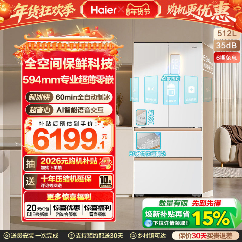 48¥ CZ001 Lx1JUlsTJO6¥ https://m.tb.cn/h.7EcpduL 海尔麦浪512Ultra制冰法式双开四门超薄零嵌入式家用风冷无霜冰箱 --------------------- 【原售价】14,999元 【现售价】11,999元。