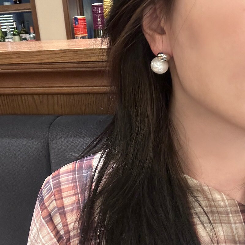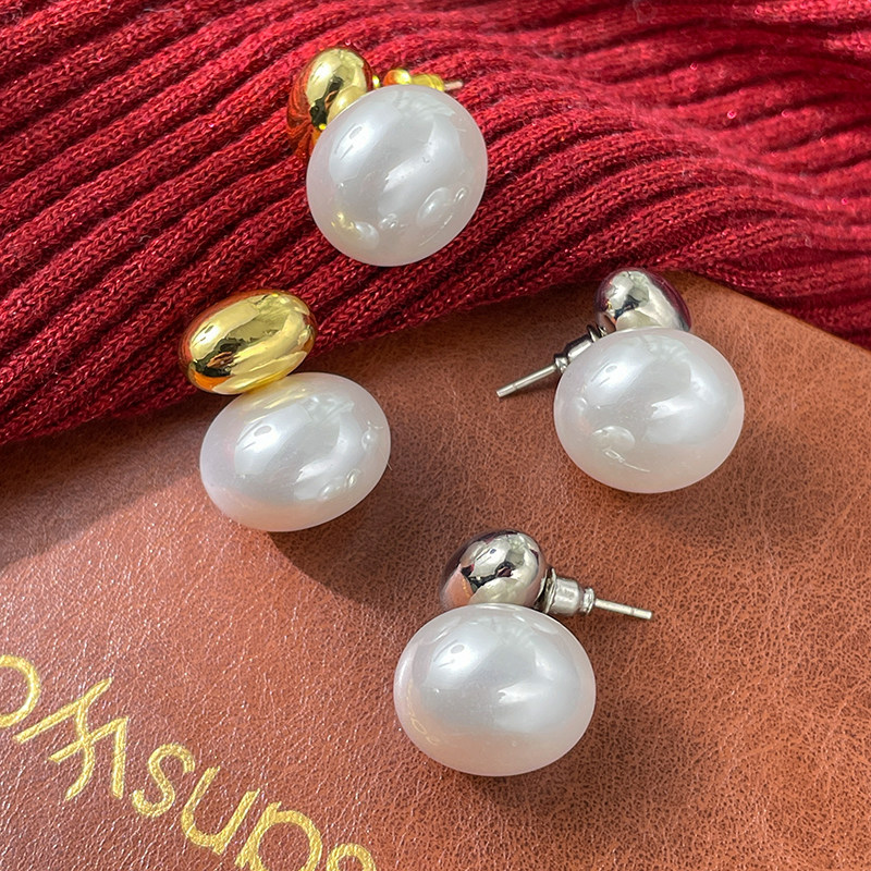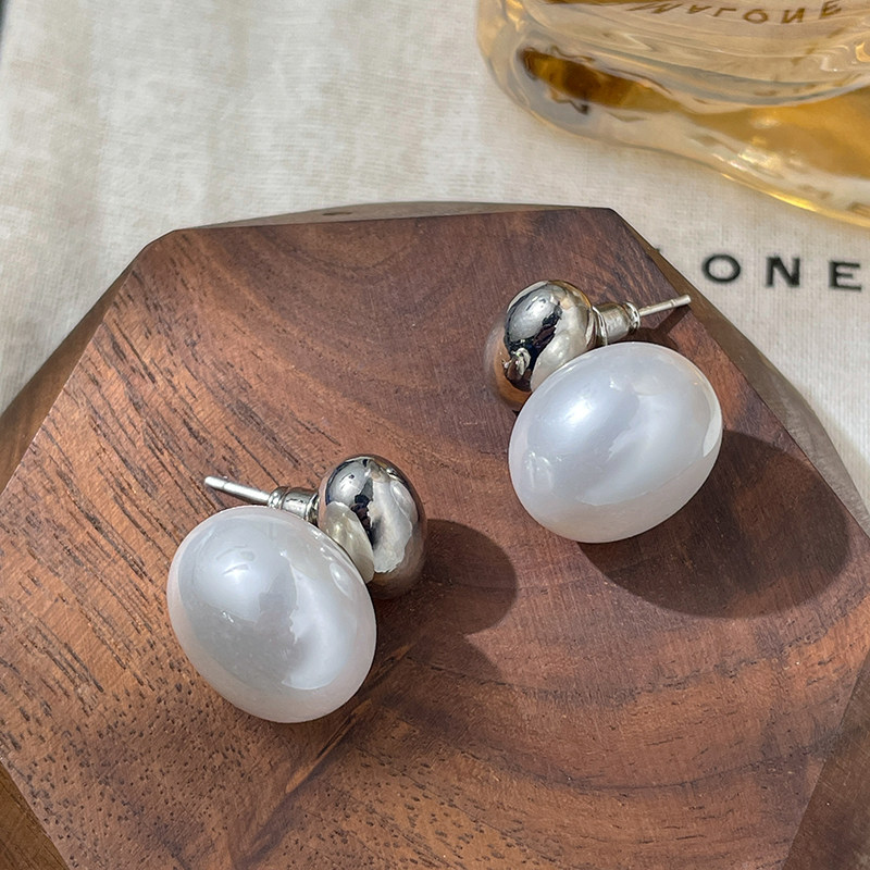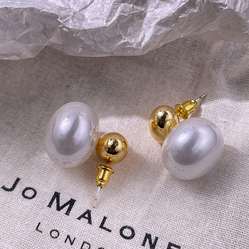 📚 LJW 小众设计馒头珍珠小胖墩金球银球耳钉耳环高级感百搭椭圆耳饰