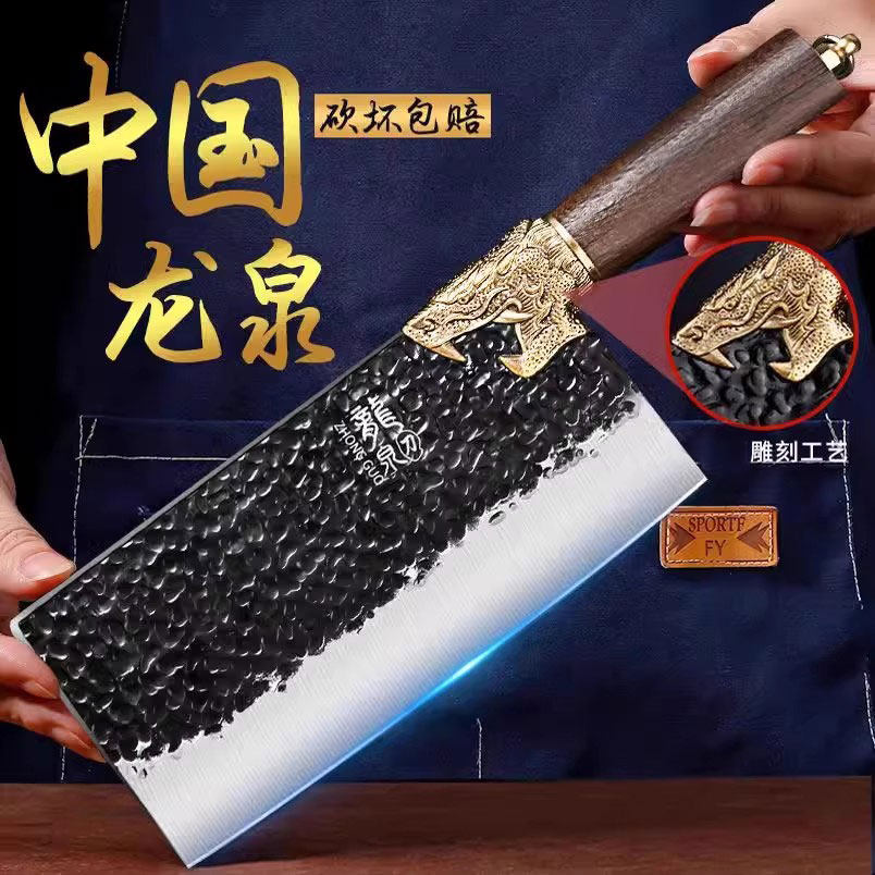 📚 龙泉刀具菜刀套装切菜刀菜板二合一全套家用厨房切肉片刀砍骨头刀
