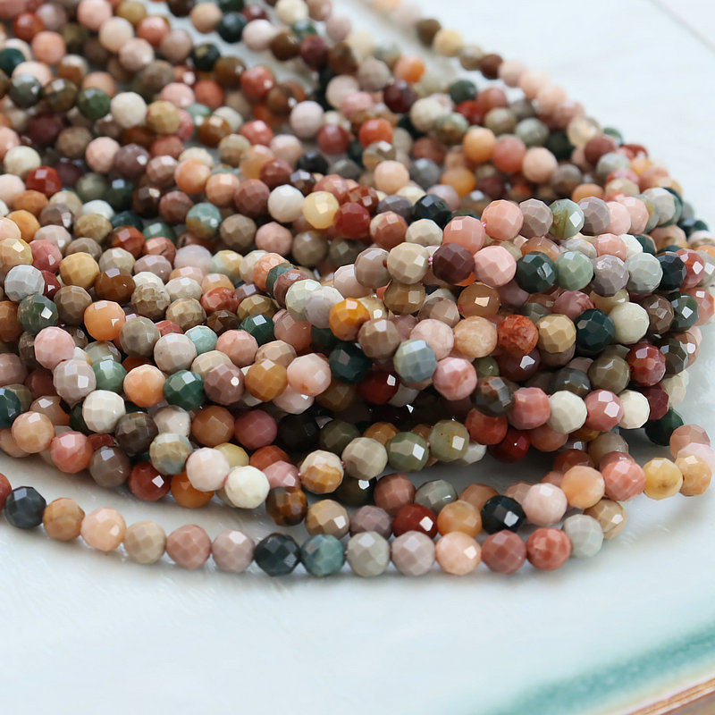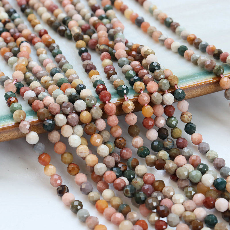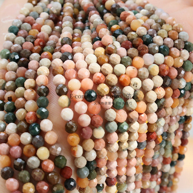 📚 4mm圆珠切面玉石阿拉善散珠串条 半成品刻面珠子 diy饰品材料配件
