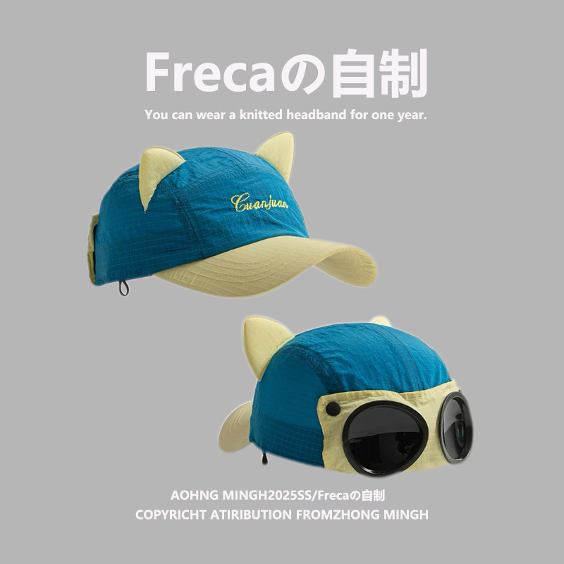 📚 墨镜飞行员帽潮美式复古拼色速干鸭舌帽子女可爱猫耳亲子棒球帽夏