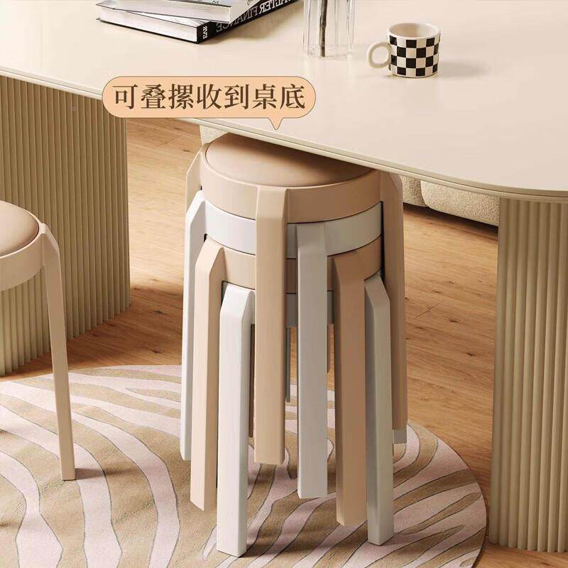 📚 凳WOK子家餐用客厅塑料凳子加厚圆凳浴可室叠放红高凳现代网简约