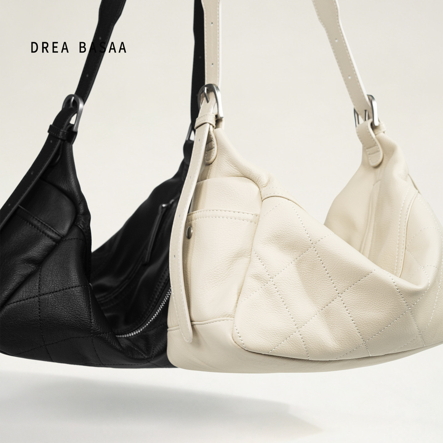 📚 DREA BASAA半山菱格枕头包头层牛皮小众设计时尚百搭单肩包斜挎包