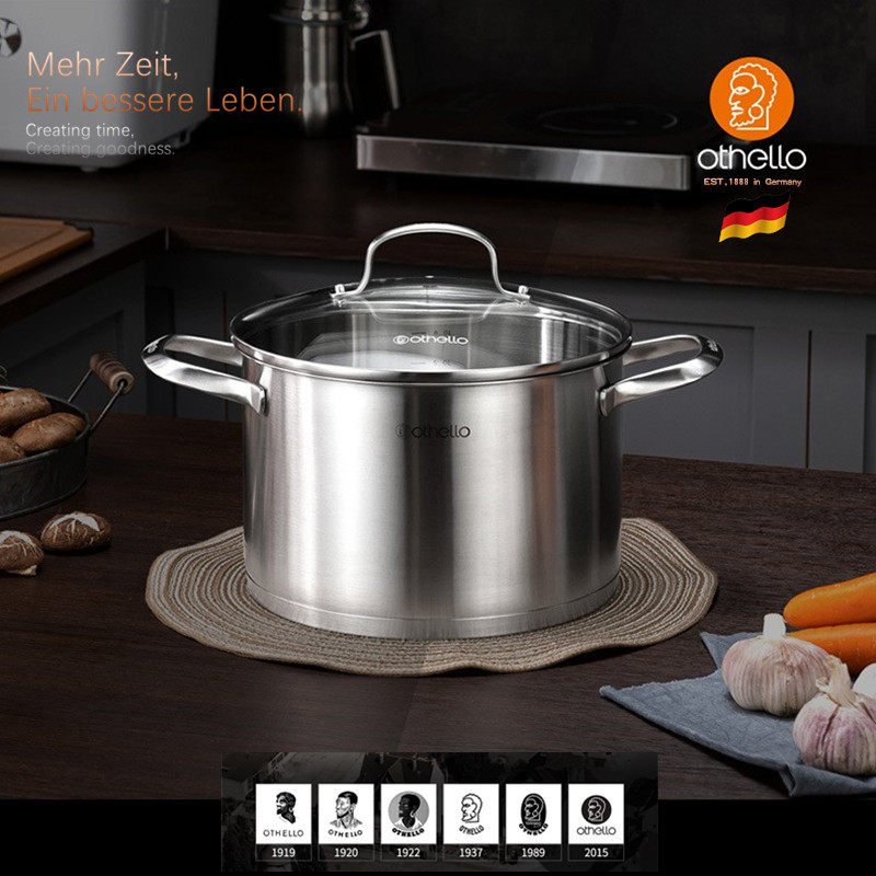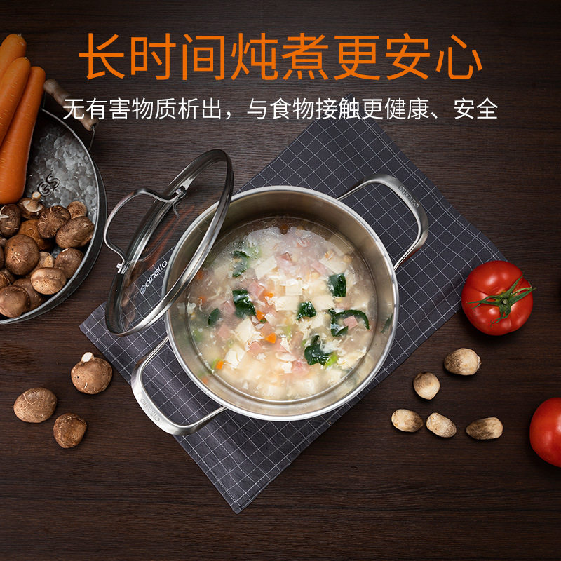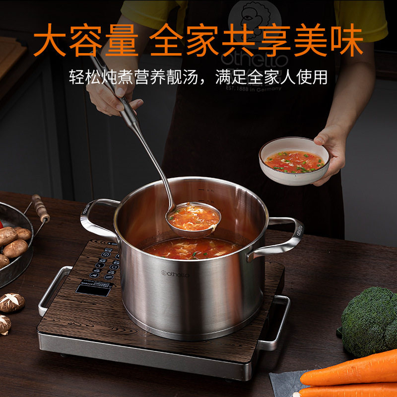 📚 德国316双耳汤锅18/10不锈钢加厚20/22/24cm煤燃气电磁炉通用锅具