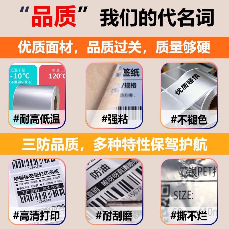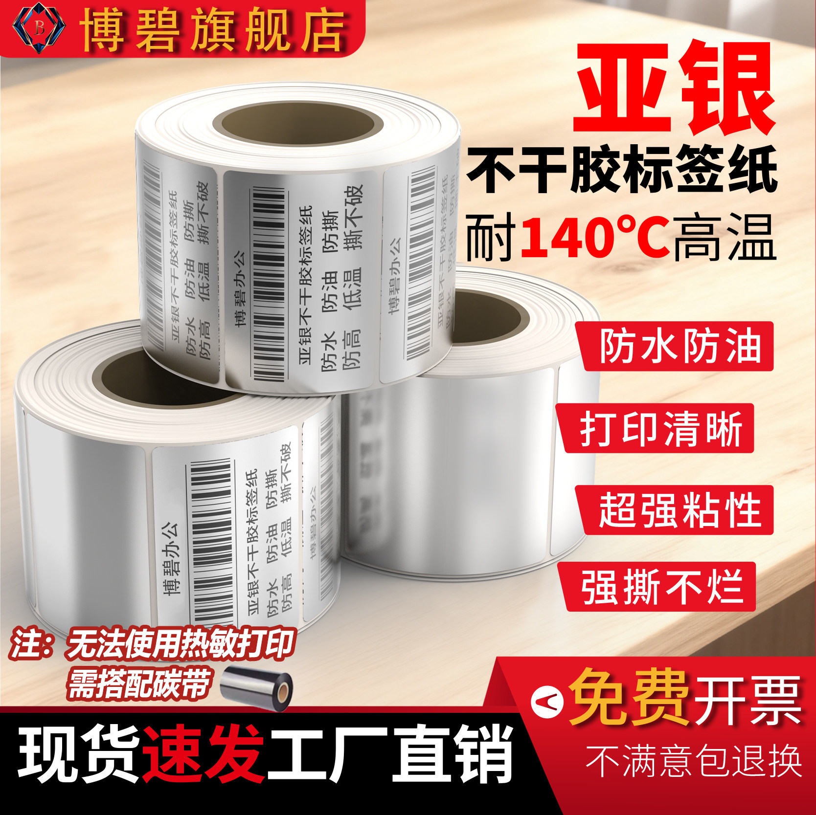 📚 亚银标签纸条码打印贴纸哑银不干胶标签PET打印贴纸耐可打印可手写耐高温防水防酒精防油撕不烂银色定制印刷