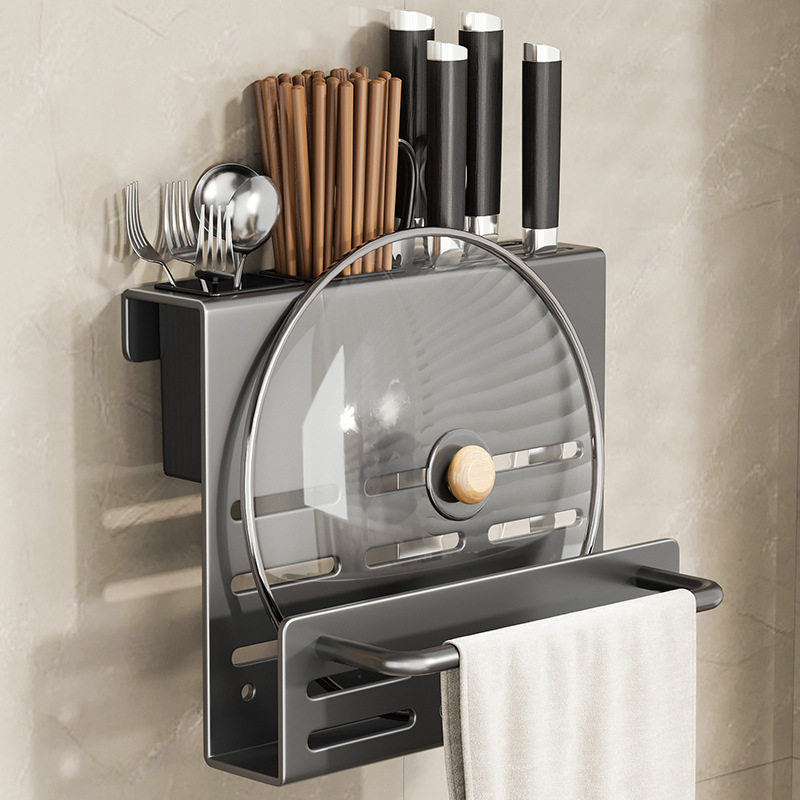 📚 挪威厨房免打孔刀架置物架多功能壁挂式刀具收纳架砧板筷子一体架