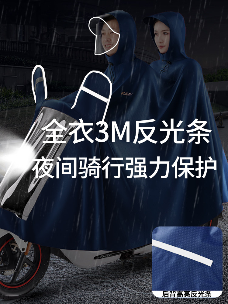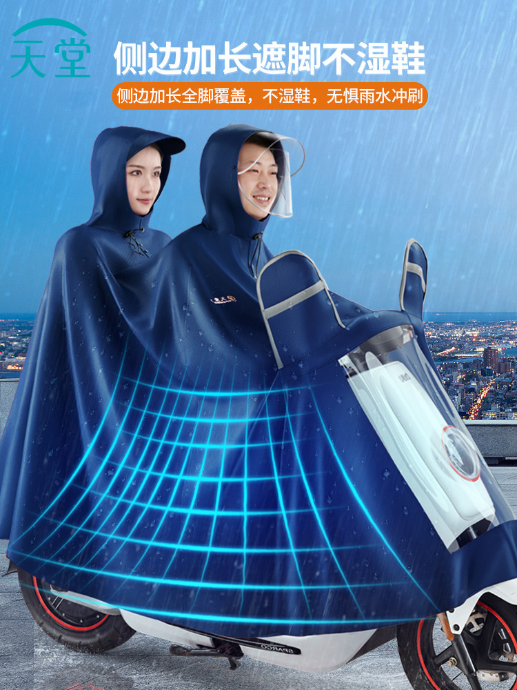 📚 天堂雨衣电动摩托电瓶车双人母子2人男女加大长款全身防暴雨雨披