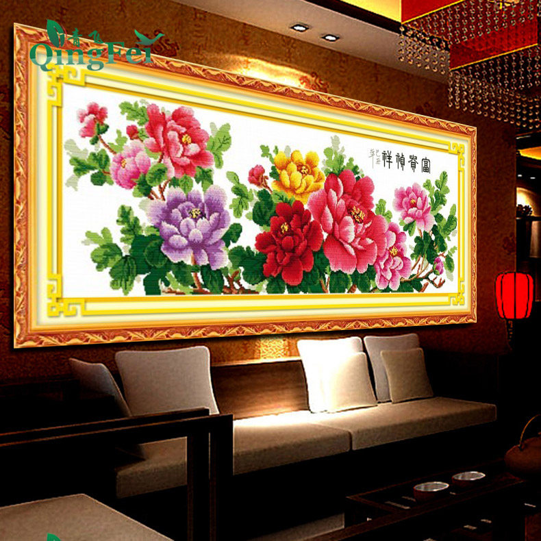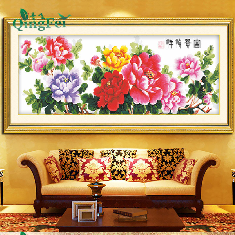📚 青飞精准印布一品天香十字绣富贵祯祥花开富贵全图牡丹花大版包邮
