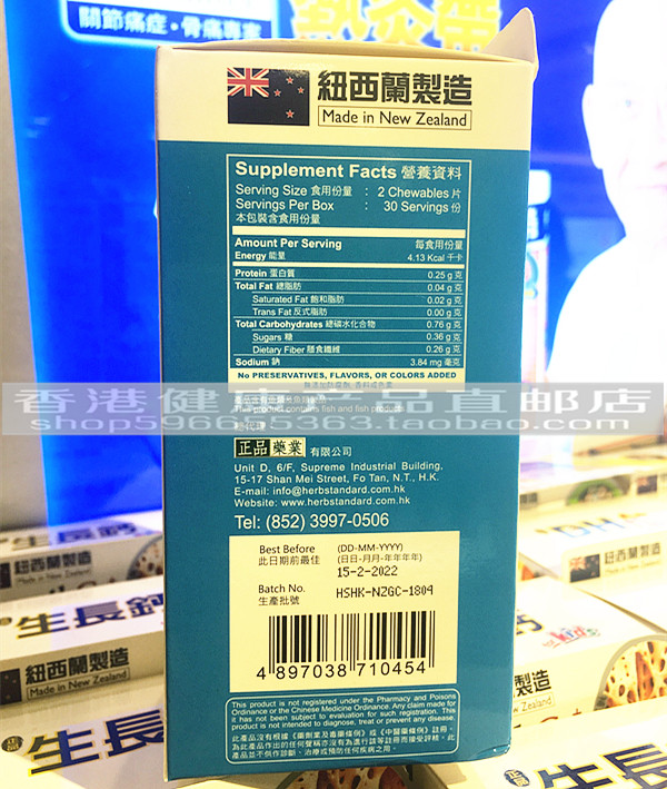 📚 香港万宁代购 正品Growth+纽西兰生长钙片60粒咀嚼片钙镁锌DHA