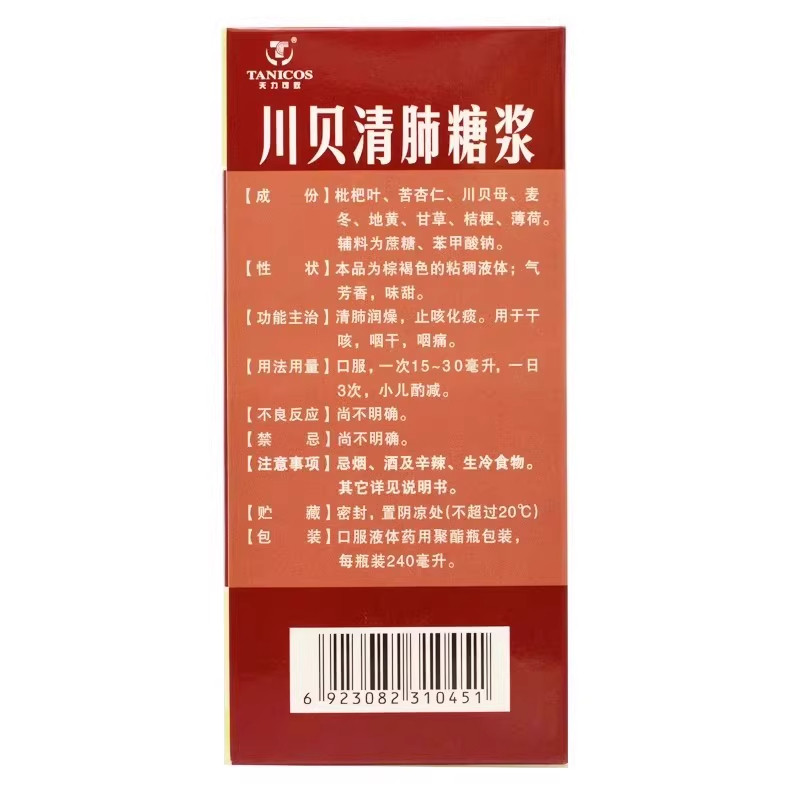 📚 天力可致 川贝清肺糖浆 240ml清肺润燥止咳化痰 用于干咳咽干咽痛