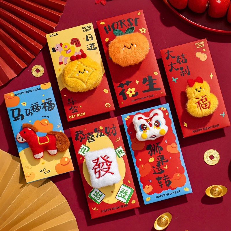 📚 红包送小孩2026马年新款利是封个性吉利醒狮花生挂件千元压岁包