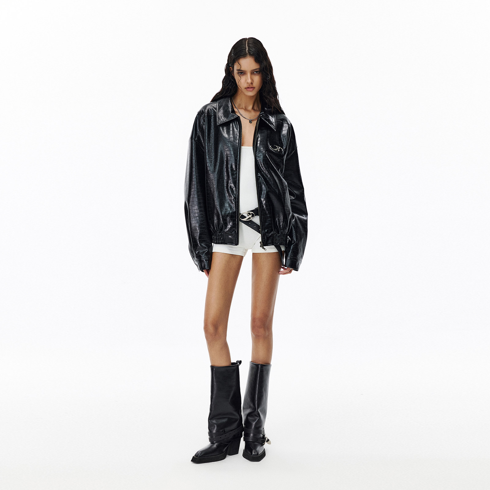 📚 IMXS【鳄鱼纹】美式复古PU皮衣外套男女高街上衣痞帅翻领拉链夹克