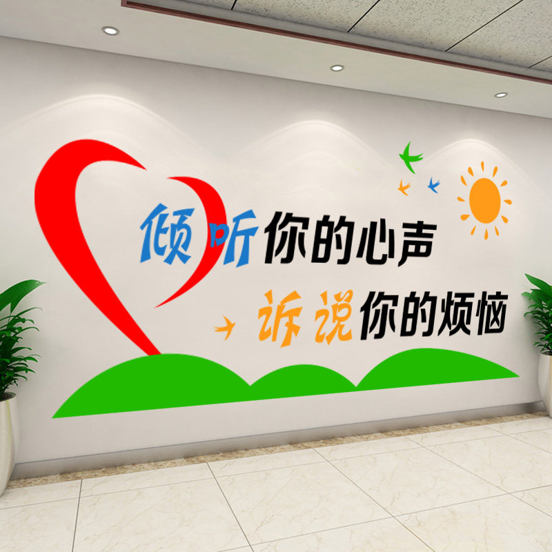 📚 小学生心理辅导室装饰文化背景墙墙贴心理健康咨询室标语布置贴纸