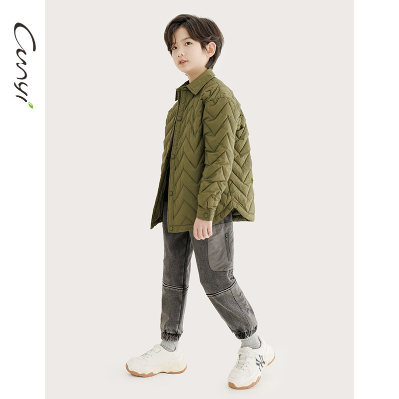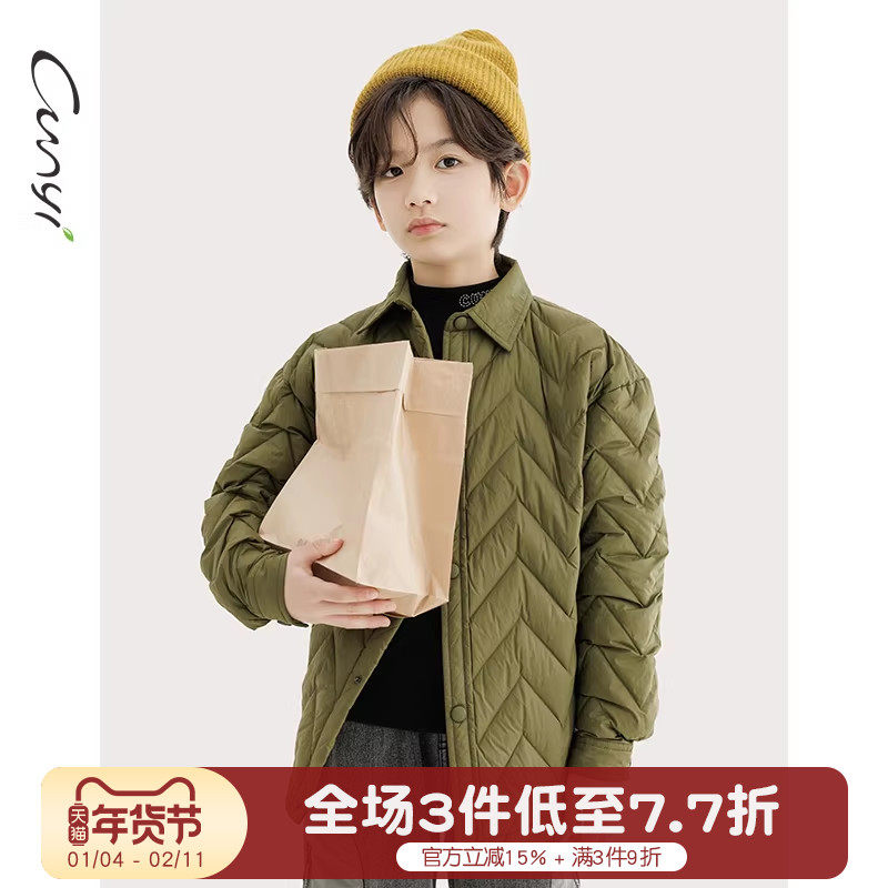 📚 纯一良品童装男童羽绒服秋冬新品中大童复古防风翻领轻暖外套