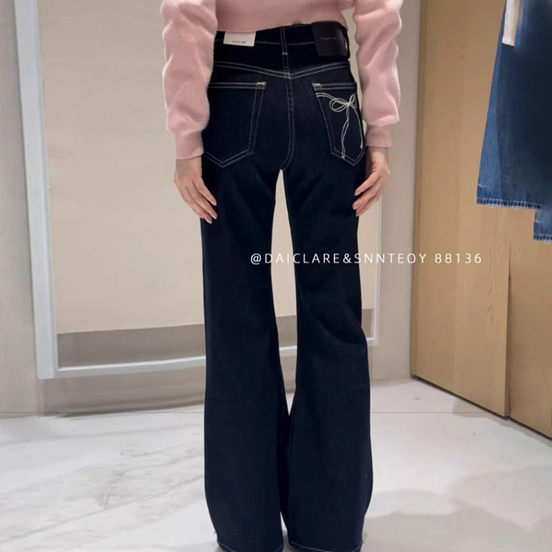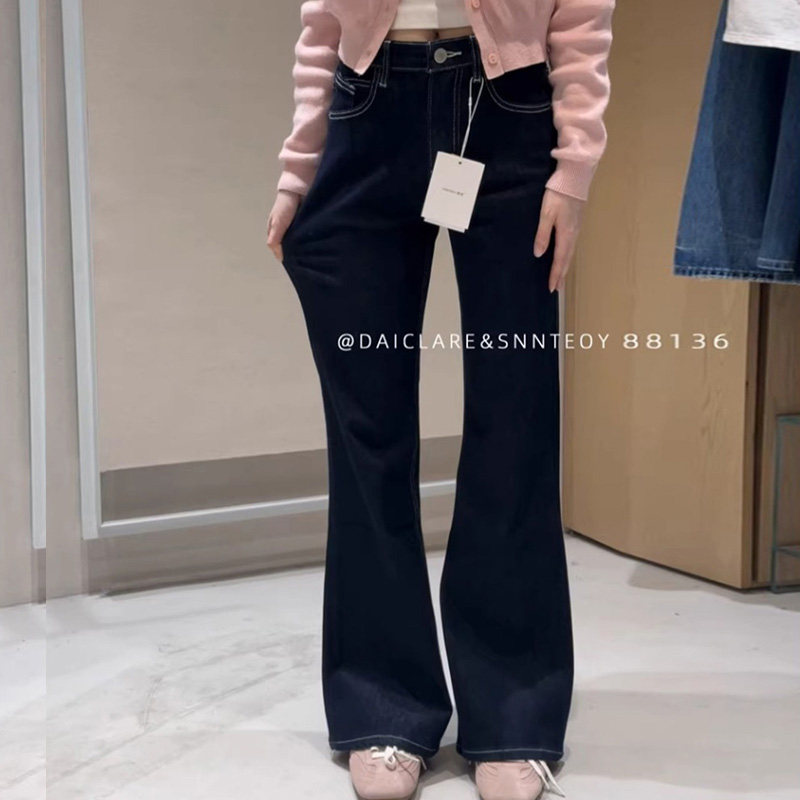 📚 代嘉儿daiclaire森调88136春季显瘦拖地喇叭裤高腰弹力直筒牛仔裤
