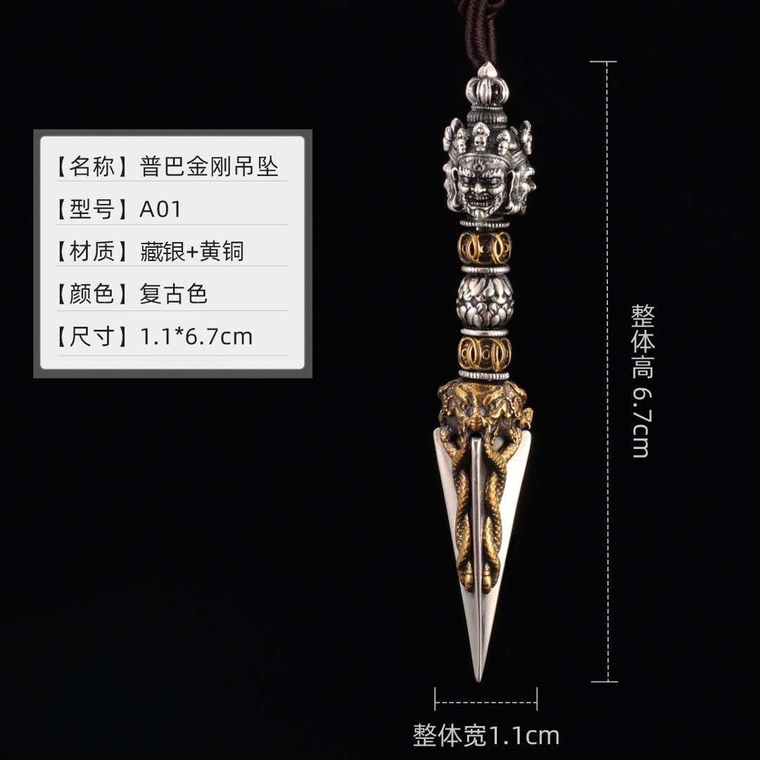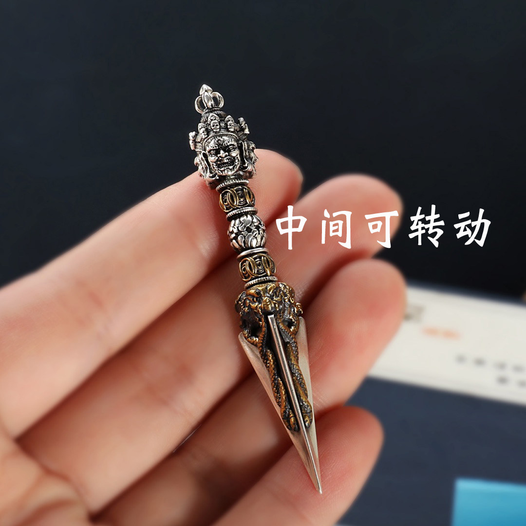 📚 尼泊尔手工纯铜金刚杵普巴金刚橛降魔杵吊坠挂件泰银双色法器可转