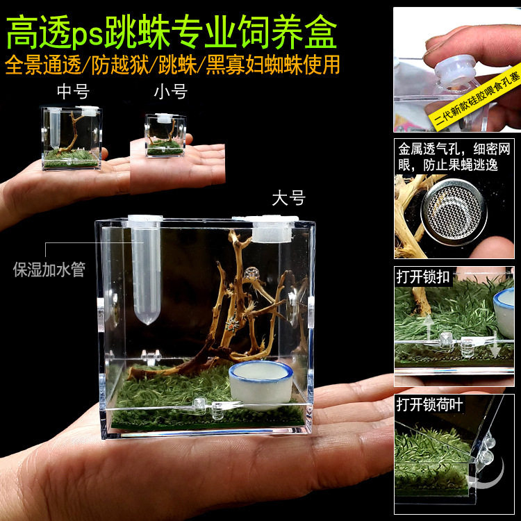 📚 跳蛛饲养盒 小型非捕造景箱 佛罗里达跳蛛昆虫带加湿器投食口