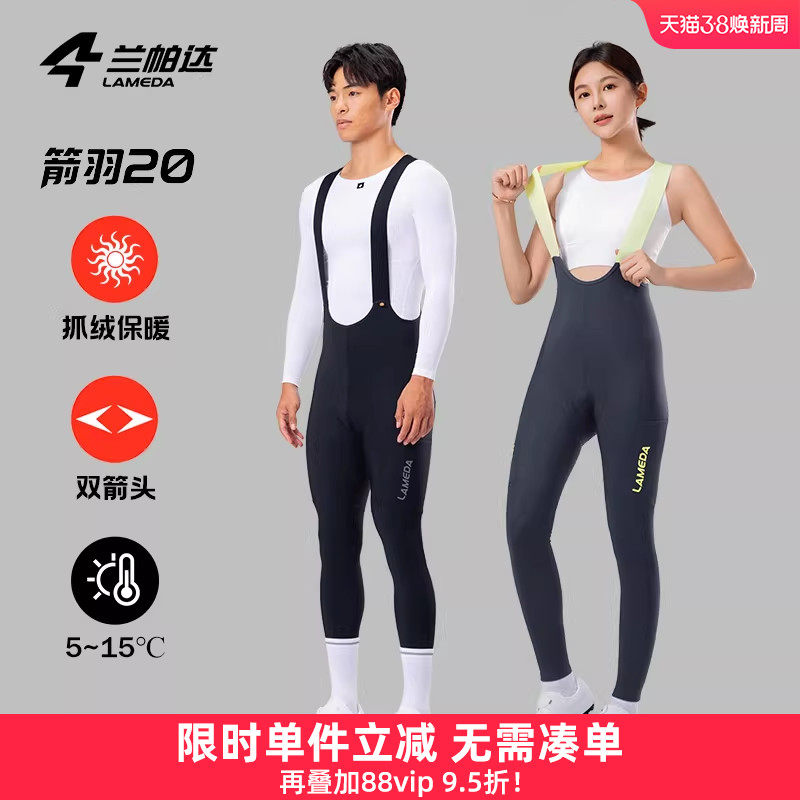 📚 兰帕达箭羽20抓绒骑行裤5-15度双箭头背带带口袋男女秋冬自行车