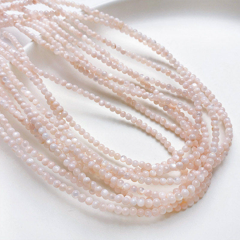 📚 3mm粉色天然贝壳珠子圆珠散珠手工diy串珠手链项链耳饰品材料配件