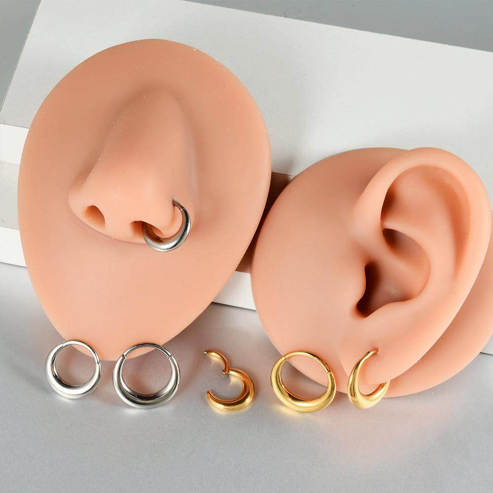 📚 食人花 欧美气质G23钛合金卡扣式耳环耳骨环鼻环鼻中隔素圈耳扣女
