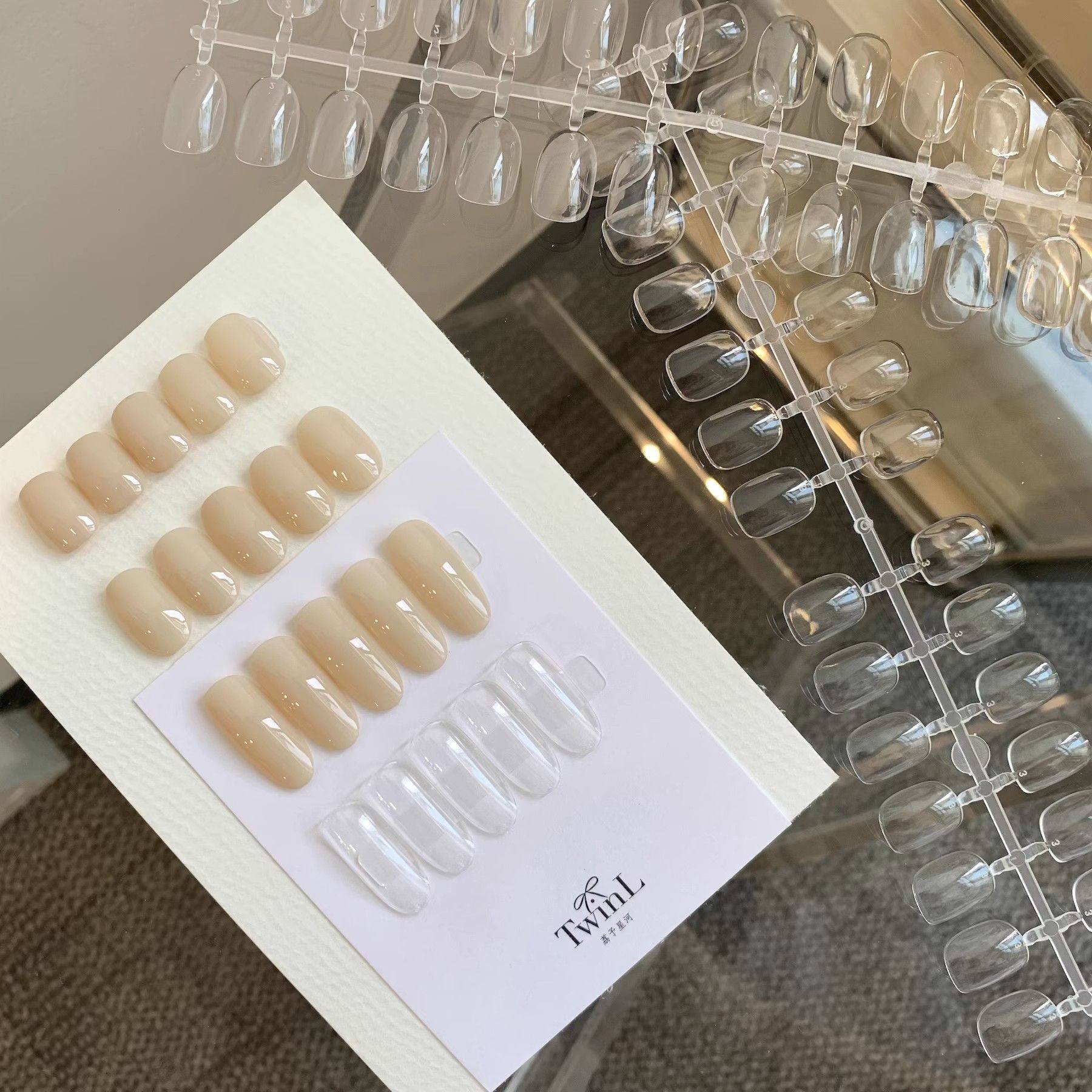 📚 日式网红美甲店打板试色甲片短方圆甲片模板新手练习指甲款式空心
