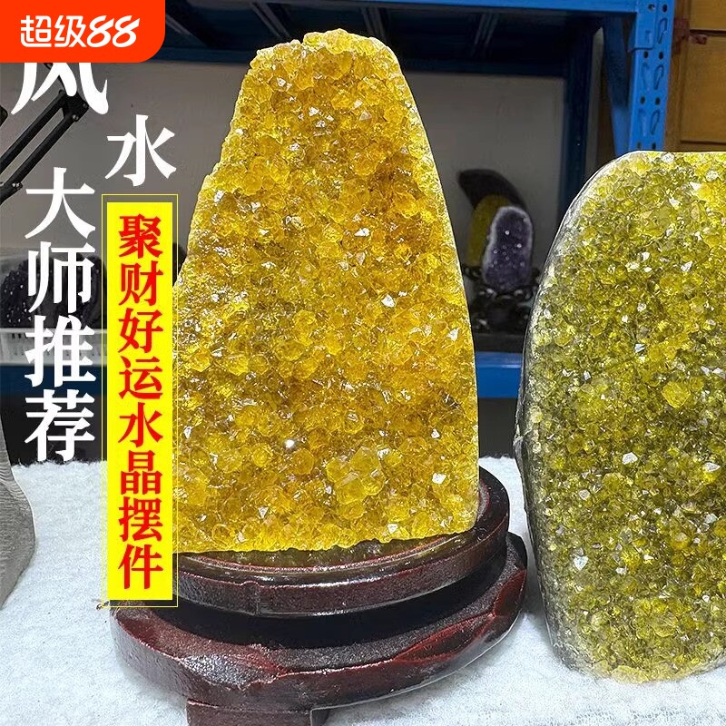 📚 乌拉圭天然水晶原矿黄水晶摆件消磁净化扩香石招财晶洞黄晶晶簇