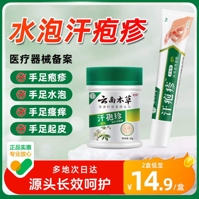 📚 云南本草汗疱疹止痒汗孢疹膏手上起小水泡汗状疱疹专软膏汉泡抑菌
