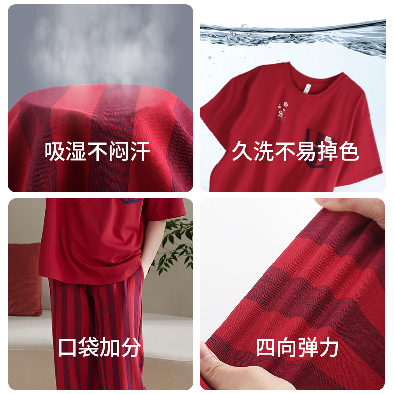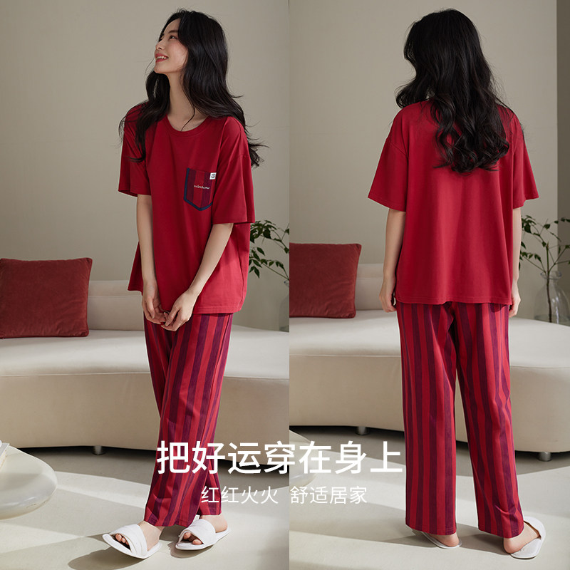家居服长裤本命年条纹短袖