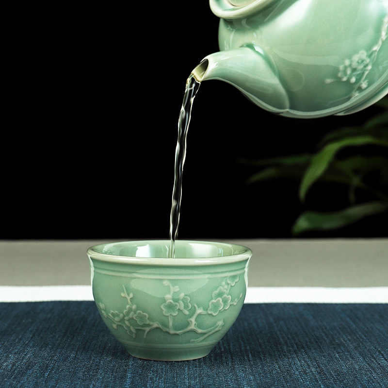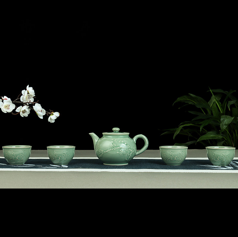 📚 青秘耀州窑青秘梅花茶具套装宋代青釉功夫中式茶壶家用泡红茶杯