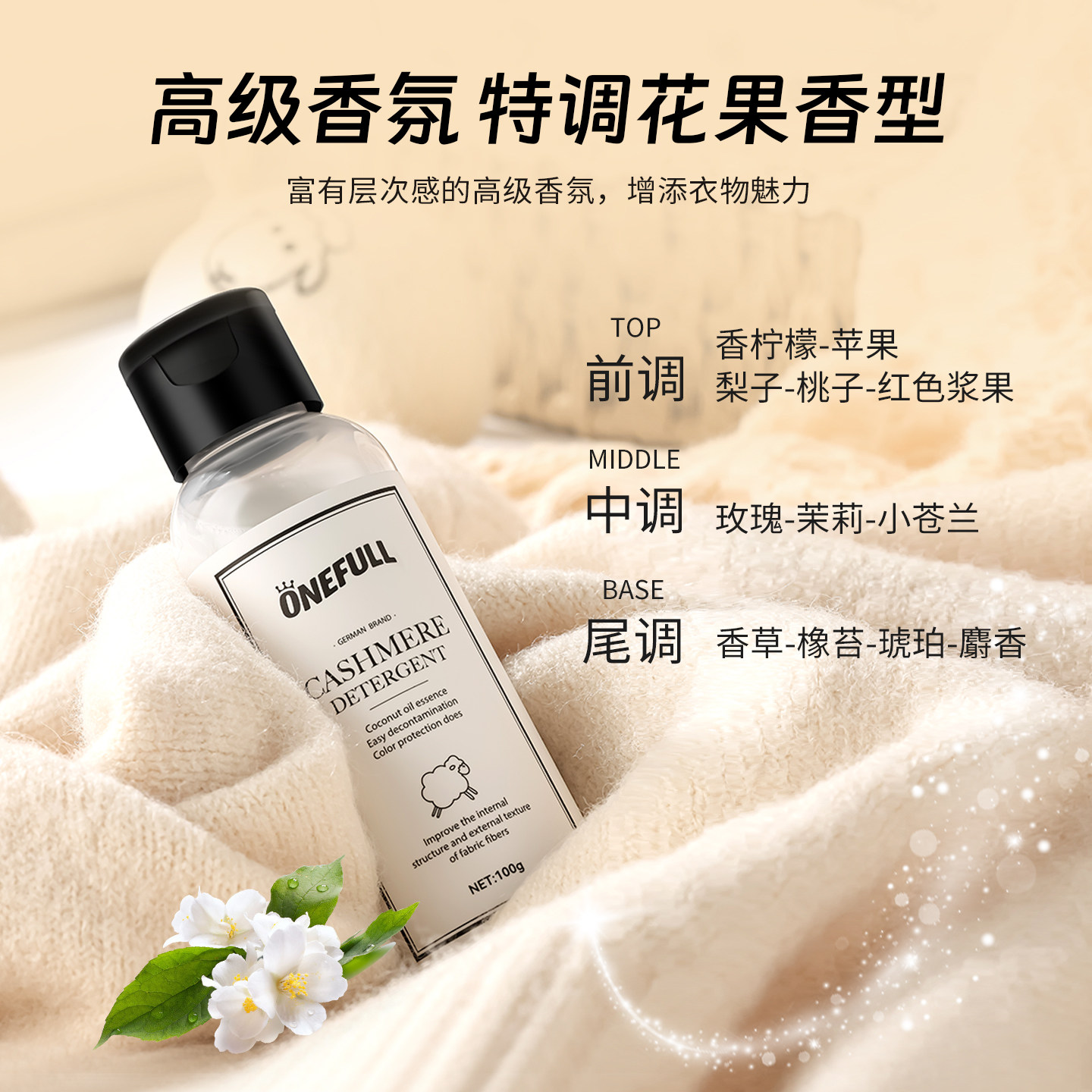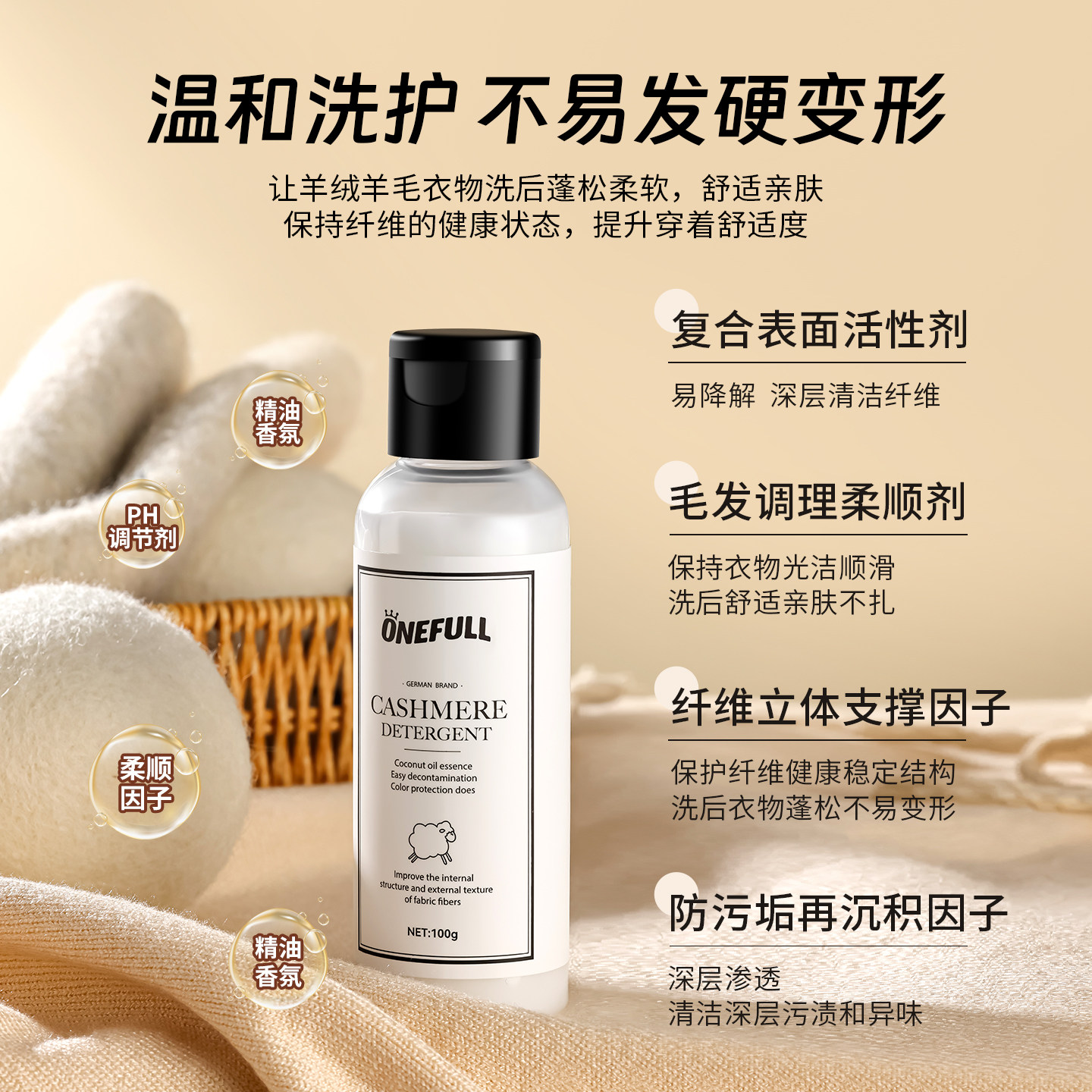📚 ONEFULL羊毛洗涤剂中性防缩水羊绒洗衣液羊绒衫羊毛衫专用清洗剂