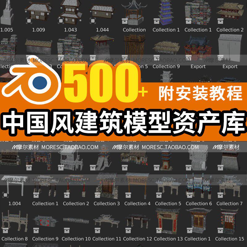 📚 Blender资产中国风建筑塔楼牌坊拱桥古典家具对联灯笼装饰模型库