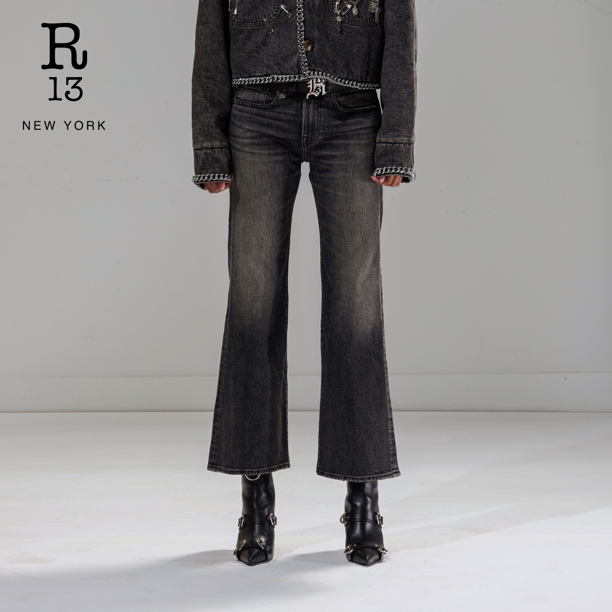 📚 R13 JOAN KICK FLARE 复古深色水洗中腰微喇牛仔裤