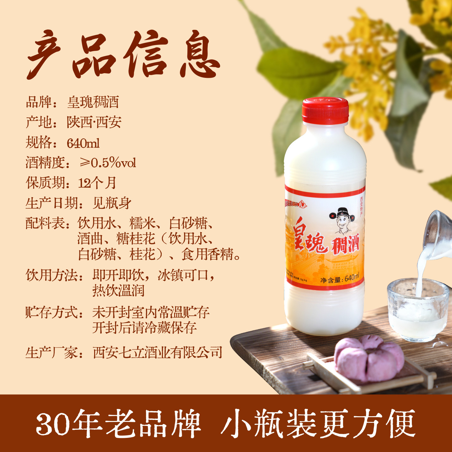 📚 【官方正品】皇瑰稠酒长安米露陕西特产西安640ml桂花米酒醪糟酒